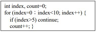 8.下列程式片段執行完,count 之值為何?(A) 1 (B) 4 (C) 5 (D) 6