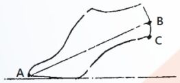 12. 如下圖之鞋楦 AB 直線應為(A)楦長線(B)繪圖線(C)鞋牆線(D)楦側線。