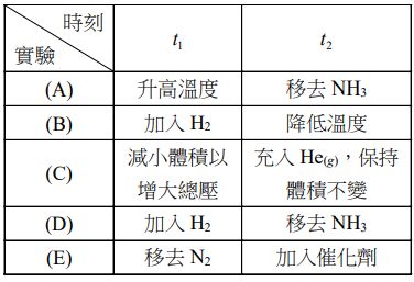 17. 已知為吸熱反應,今在左述平衡系中進行下表所列( A )~( E )五組實驗,則 何者可以符合下圖之關係?(A)(B)(C)(D)(E)