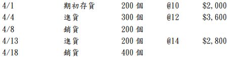 26. 以下為某公司 2022 年 4 月份之進銷貨資料: 假設該公司採永續盤存制加權平均法,請問 2022 年 4 月 30 日該公司存貨餘額為何? (A)$1,000 (B)$1,200 (C)$1,232 (D)$1,458