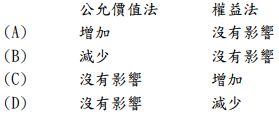 28. 投資公司於投資次年收到被投資公司宣告並發放之現金股利時,在下列不同的會計方法下,對投資帳 戶的影響為何?(A) (B) (C) (D)
