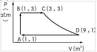 3. 今有150 K及1 atm的理想氣體;其狀態的變化情形由 A → B → C → D → A,如附圖所示,則下列有關此氣體的敘述何者正確?