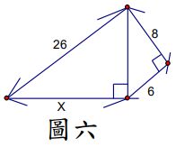 35. 如圖六,求出 x 之值為何?(A) 10 (B) 16 (C) 20 (D) 24
