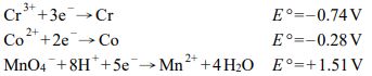 28. 以下三個反應為在酸性溶液中的標準還原電位:此三個反應中最強的還原劑為何? (A)(B) Cr (C)(D)