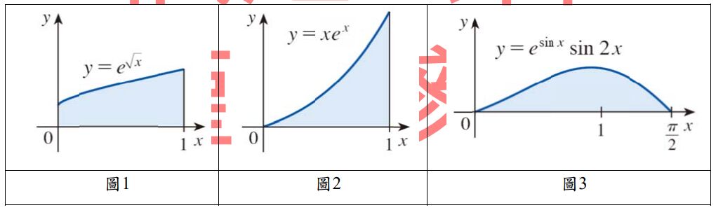 12.下列選項中的敘述,何者正確? (A)圖1和圖2的陰影區域,面積相等。 (B)圖1和圖3的陰影區域,面積相等。 (C)圖2和圖3的陰影區域,面積相等。 (D)圖1、圖2和圖3的陰影區域,面積都不相等。