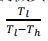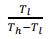 42.冷凍機系統主要是系統輸入作功時,由低溫環境中吸取熱,然後經過系統運作後由高溫環境排熱 ,來提供某室內空間冷卻使用,則理想冷凍機性能係數 COPR 公式如何計算? (A) (B) (C) (D)
