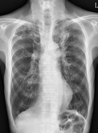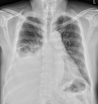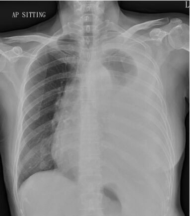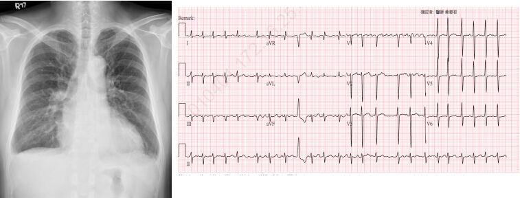 21. 黃先生68歲,有慢性阻塞性肺病(chronic obstructive pulmonary disease, COPD)的病史。因為發燒三天,合併呼吸急促與咳嗽有黃濃痰的狀況來到急診。黃先生自訴三個月前曾經因為慢性阻塞性肺病急性發 作(COPD exacerbation)住院一週,使用過類固醇與注射型抗生素。於急診時理學檢查發現呼吸急促,意識清楚。體溫 38.6°C, 心跳110 /minute, 血壓 136/80 mm Hg, 呼吸速率 26 /minute, 不使用氧氣的情況下SPO2: 91%,CXR如圖所示。WBC: 12,000 /mm³, platelet count: 159,000 per /mm³, BUN 26 mg /dl, creatinine 1.2 mg/dl。於急診的處置下列何者不適當?