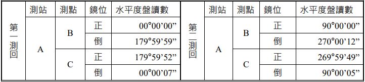 35.以經緯儀觀測水平角∠BAC兩測回如下表,其兩測回 平均水平角 為:
