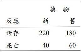 三、新、舊兩種藥物治療某種魚類疾病的結果如下表:請問利用此兩種藥物治療此魚類疾病的效果是否相同(α=0.05)?