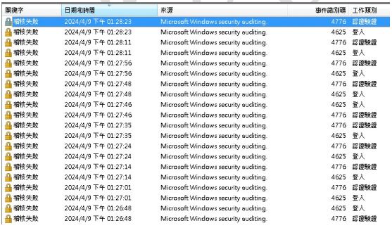 42. 最近某工程師發現他的電腦十分緩慢,當其查看事件檢視器如附圖,請問從附圖中的資料,可以確認的結論為下列何項?(A) 該電腦已經被入侵成功(B) 有人嘗試登入該電腦,但都失敗(C) 該電腦應該沒有問題(D) 電腦中了木馬
