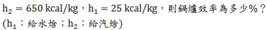 22. 某鍋爐實際蒸發量180kg,燃料發熱量為170000kcal, (A)60.89 (B)66.17 (C)71.47 (D)76.79