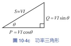10.視在功率S、平均功率P、虛功率Q的大小,可以使用直角三角形,如圖10-4c,表現其