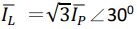 12.下圖的稱為相電流稱為線電流,逆向序△ 形連接的線電流是相電流的倍,,角度超前 30°:。(A)對(B)錯