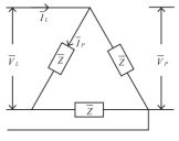 11.下圖的稱為相電流稱為線電流,正向序△形連接的線電流是相電流的倍,,角度落後 30°:。(A)對(B)錯