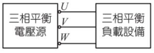 5.某生購買了一組三相平衡負載設備,已知此三相平衡負載設備為 Δ 接方式,且每相阻抗為 3 + j4 歐姆。今將其接至三相平衡電壓源,如右圖所示之 U、V、W 三端子,且線電壓有效值為 100V。圖中負載總消耗功率為多少瓦特?(統測 112) (A) 600 (B) 1200 (C) 2400 (D) 3600