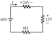 20.如圖所示,求電流 I 為何?(111 鐵路) (A) 3 安培(B) –3 安培(C) 6 安培(D) –6 安培