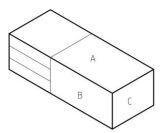 左圖,AB 兩面為垂直基準面,使用直角規劃榫肩線時,尺柄應靠著 (A)A 面 (B)B 面 (C)A、B 兩面 (D)C 面 劃線。