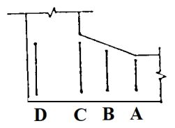 34. 有托肩地梁,如下圖所示其箍筋配置應於何處紮結二倍箍筋?