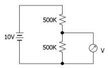 105. 如下圖所示,以 50KΩ/V 內阻特性之三用電表 DC10V 檔測量則電表之指示值為