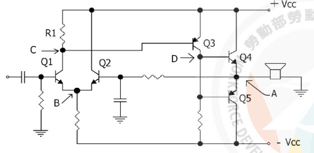 若超過 0.8V,則電晶體 (A)工作於飽和區 (B)工作於截止區 (C)工作於放大區 (D)已破壞 。