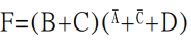 108. 化簡下列布林函數 F(A,B,C,D)=m(1,5,6,7,14,15) (A)