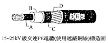 29. 下圖係 15-25kV 交連 PE 電纜構造圖,其中 C 為