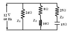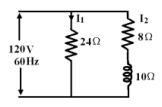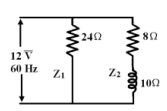57. 一電阻 10Ω、電感抗 8Ω及電容抗 15Ω並聯連接並外加 120V 電壓,則其總電流約為 (A)8A (B)12A (C)14A (D)15A 。