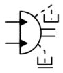 (A)定排量式液壓泵 (B)定排量式液壓馬達 (C)三角形表示液體出口,其高度為圓直徑的 1/5 (D)流體僅單方向流動 。
