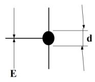 56. 如下圖所示為管路與其他管路連接點之符號,E 為管線直徑、d 為黑圓點直徑,兩者之間比例為何?