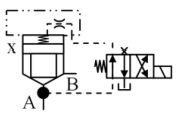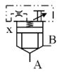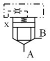 (A)方向邏輯閥 (B)壓力邏輯閥 (C)x 口有引導壓油引入時,壓油由 A 流向 B (D)x 口無引導壓油引入時,壓油由A 流向 B,亦可由 B 流向 A 。