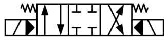 (A)四口三位換向閥 (B)過度位置四口瞬間全閉 (C)四口二位換向閥 (D)中立位置四口全閉閥 。