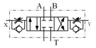 (A)以電磁閥當引導閥及引導操作換向閥當主閥組裝而成 (B)主閥中立位置流路模式為四口(A、B、P、T)皆閉合(C)外部引導 (D)內部排泄 。