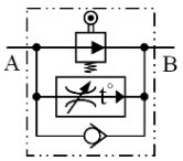 (A)有壓力補正之流量補整閥 (B)有溫度補正之流量補整閥 (C)主節流口固定 (D)主節流口為可變 。