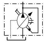 (A)壓力補償遠隔控制具輔助泵、防逆閥及洩壓閥(開迴路使用)可變量油泵 (B)負載反應型壓力和流量控制可變量油泵 (C)流量補償控制可變量油泵 (D)壓力補償控制-中心偏位(閉迴路使用)可變量油泵 。