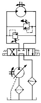 (A)變量油泵及定量油壓馬達組成之開迴路油壓系統 (B)變量油泵及定量油壓馬達組成之閉迴路油壓系統 (C)定量油泵及變量油壓馬達組成之開迴路油壓系統 (D)定量油泵及變量油壓馬達組成之閉迴路油壓系統 。