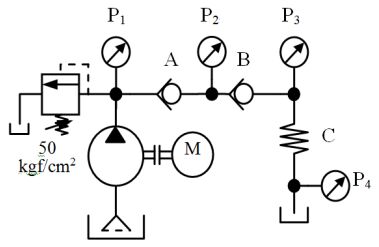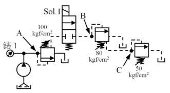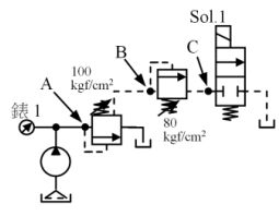 (A)快速運動 (B)保壓 (C)安全 (D)吸收脈動 迴路。
