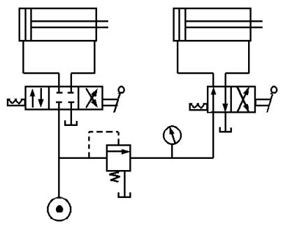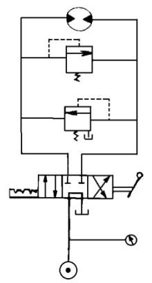 (A)剎車迴路 (B)調速迴路 (C)壓力保持迴路 (D)順序迴路 。