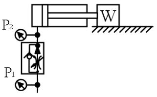 (A)P2壓力變大 (B)P2壓力變小 (C)壓力差 P 縮小 (D)通過節流閥之流量 Q 變大 。