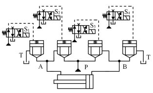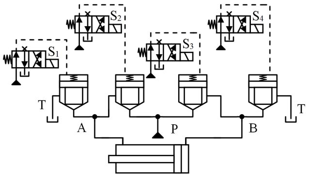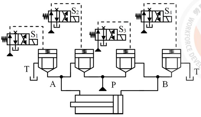 (A)中位全閉 (B)中位全開 (C)中位 PT 通 (D)中位 ABT 通