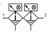 (A)過濾器 (B)過濾器附自動水排 (C)過濾器附自動水排與濾芯汙染顯示器 (D)過濾器附手動水排與濾芯汙染顯示器 。