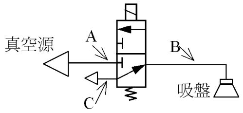 82. 如下圖,是個氣壓夾具的控制回路,要加裝一只「止回閥」改善氣壓源壓力降導致夾持力降低的問題,應該裝在哪一處位置?