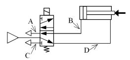 80. 如下圖,欲調控如下圖迴路的氣壓缸縮回速度,排氣限流的速度控制閥應該裝在哪個位置效果最佳?