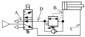 (A)A加節流閥 (B)B加快速排氣閥 (C)D加快速排氣閥 (D)C加速度控制閥 。