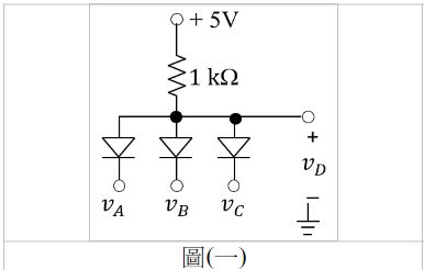 2. 如圖(一)所示之PN二極體電路,假設二極體順嚮導通電壓為0.7V,=+1V,=-1V,=+2V,則為何?