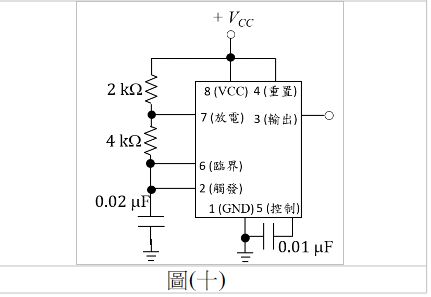 20. 如圖(十)所示為一利用555 IC所設計之無穩態電路,試問此電路輸出信號之週期T約為何?