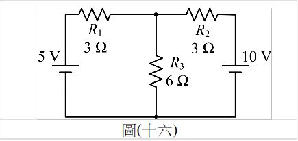 32. 如圖(十六)所示電路,求R3 消耗功率為何?