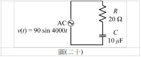 38. 如圖(二十)電路所示,試求電容器兩端電壓之瞬時值為何?