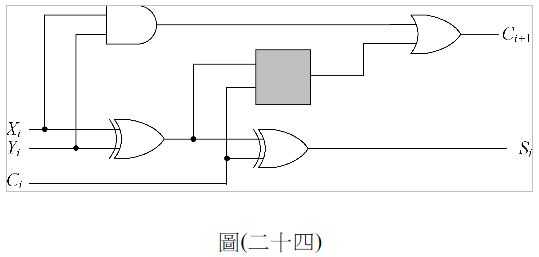 49. 考慮一全加法邏輯電路如圖(二十四),試問空格內應補上何種邏輯閘?