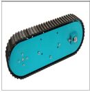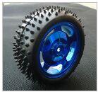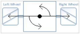 12. 如下圖所示,二輪機器人輪胎直徑為8.6公分,二輪的間距為23.5公分,使用差動驅動方式往左旋轉,左右輪胎各移動49.88公分,請換算左右輪馬達需要旋轉的圈數,達到相通的效果?