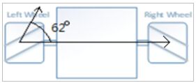 29. 如下圖所示,二輪機器人輪胎直徑為6.7公分,二輪的間距為16.8公分,請問機器人向前往左旋轉62度,請計算右輪子需要移動的距離?